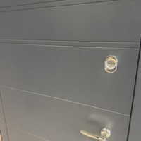 Metāla durvis ar MDF apdari iekšpusē un ārpusē.