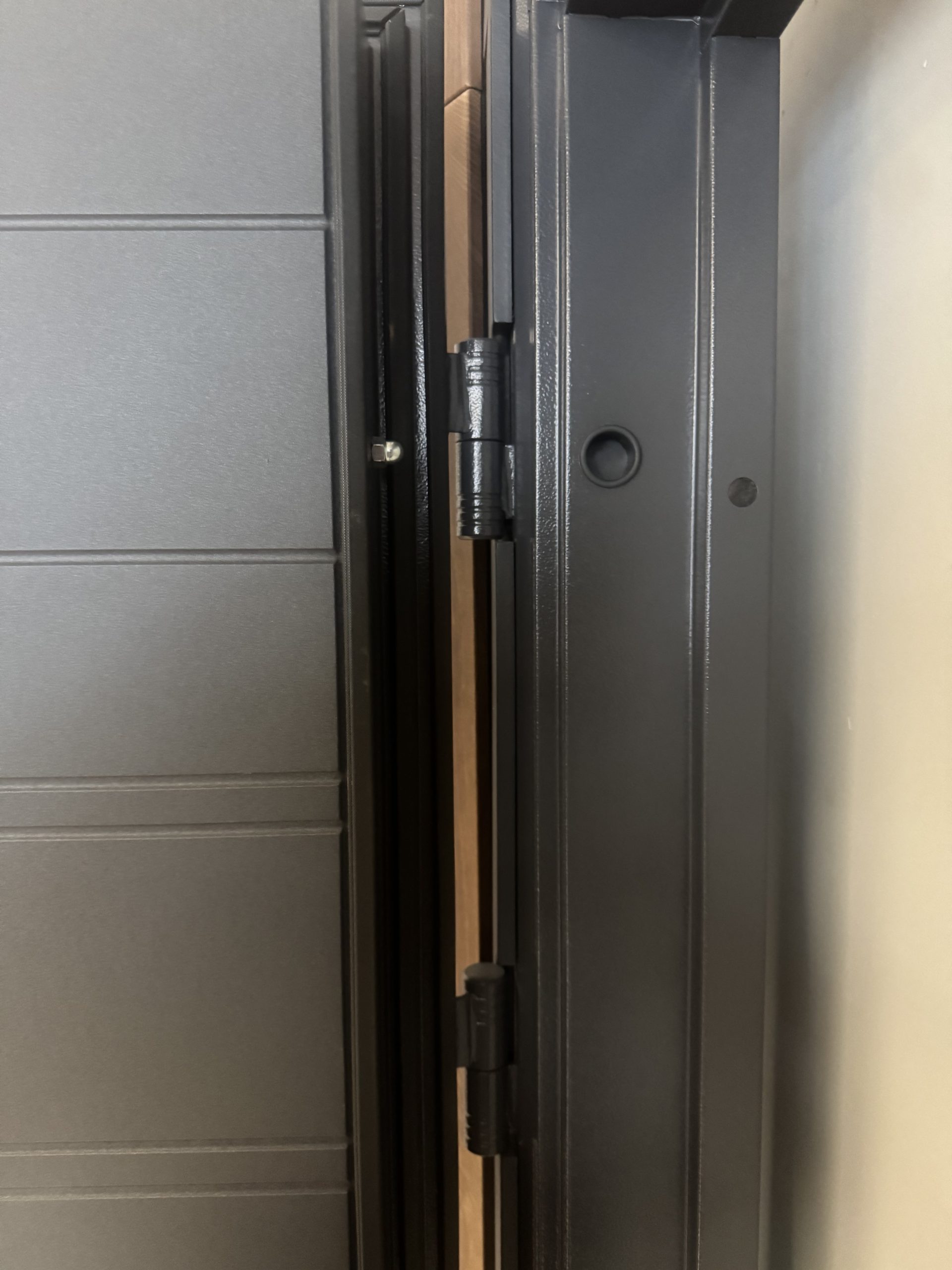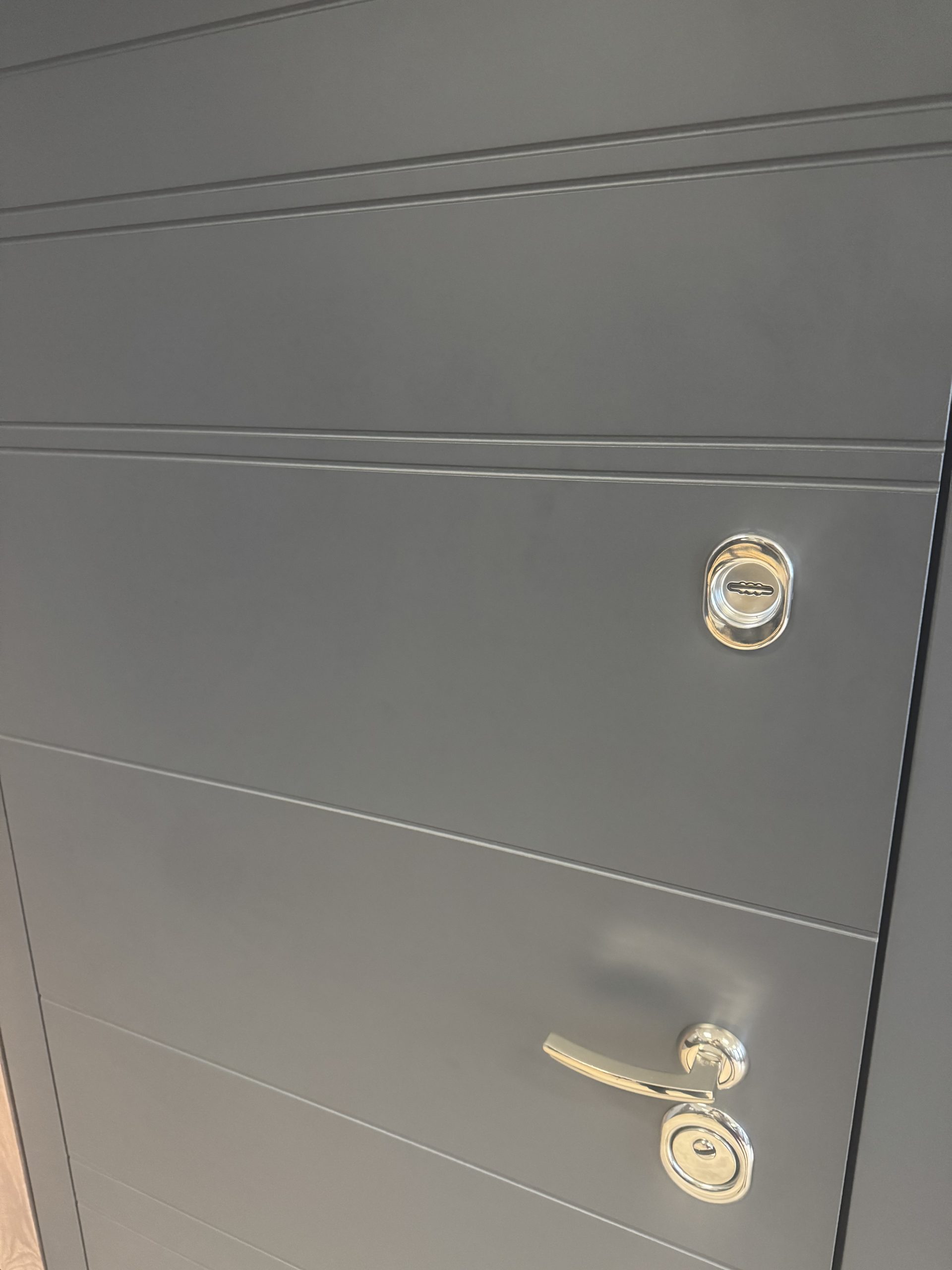 Metāla durvis ar MDF apdari iekšpusē un ārpusē.